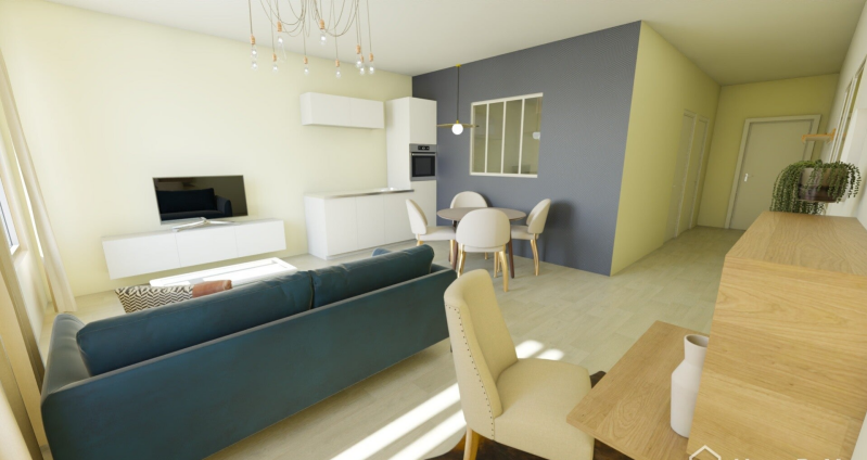 Voici la création d'un appartement T2 à partir d'un simple plateau d'anciens bureaux. Plomberie, électricité, cloisons, cuisine, salle de bain, peintures, sol... Tout a dû être créé !
